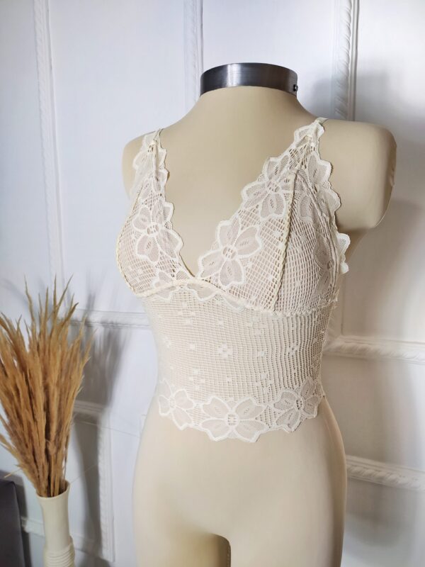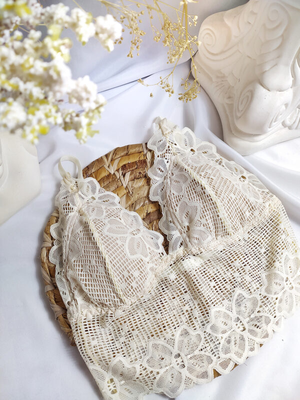 Bralette hecho con materiales elásticos y forro ajustable al busto con tirante graduable.