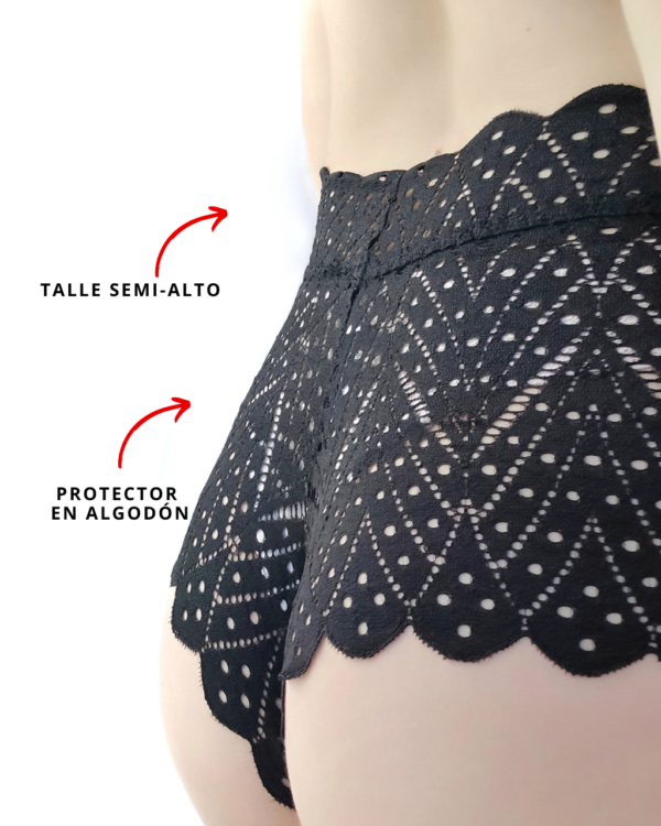 Nuestra prioridad es tu comodidad, por eso hemos incorporado un protector de algodón de alta calidad en la zona íntima. Así, puedes sentirte fresca y segura durante todo el día. El encaje delicado y el diseño de tiro alto de estos pantis realzan tus curvas de forma sutil y elegante. Te sentirás segura y hermosa en cualquier ocasión.