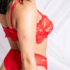 Panty tipo tanga elaborado en encaje y mallatex, con refuerzo en 100% algodón, asegurando frescura y suavidad en contacto con la piel.