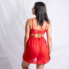 Sistema decorativo de tirantes regulables en la parte frontal, diseñado para transformar el conjunto en un babydoll con un ajuste adaptable.