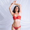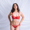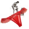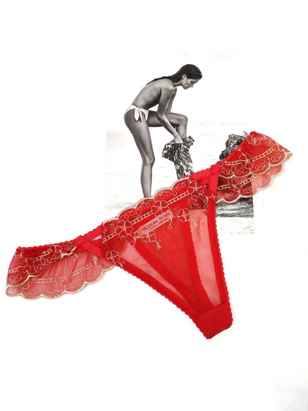 Panty tipo tanga en encaje bordado con encaje decorativo en cintura, protector 100% en algodón.