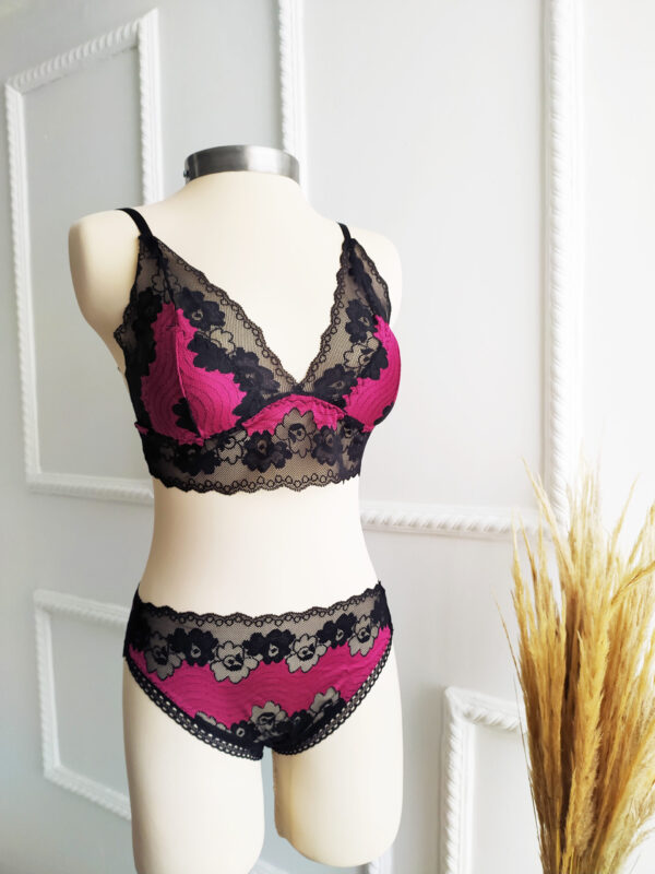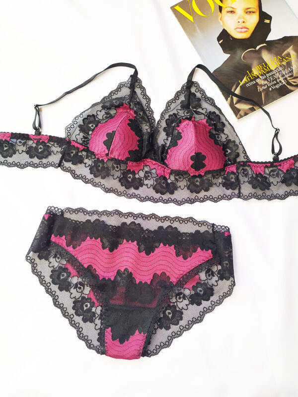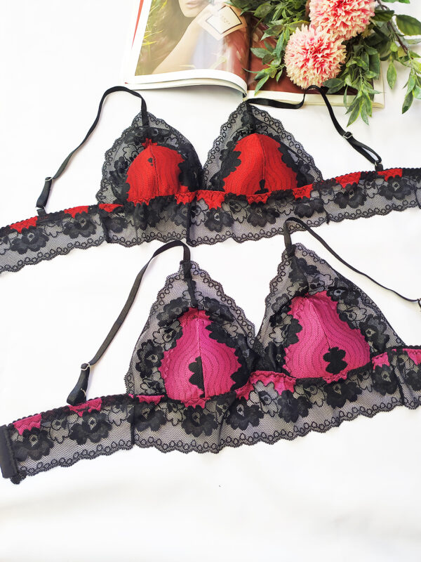 Conjunto de bralette con copa triangular sin realce y gafete en espalda.