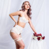 Liguero confeccionado en materiales elásticos, con cierre de gafete y broche cubierto para mayor comodidad y seguridad.