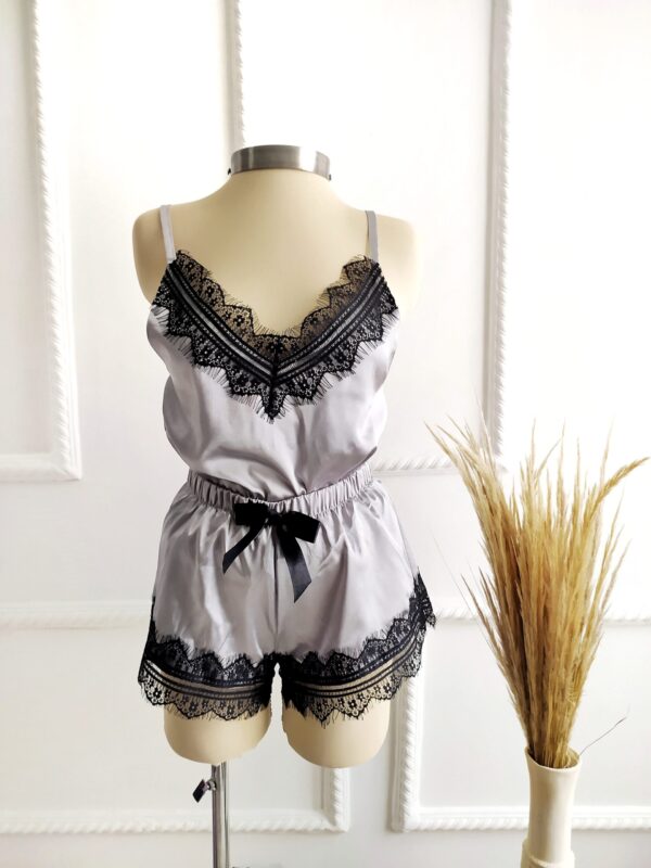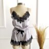 Pijama hecha en material semi-licrado delicadamente seleccionados tanto en su diseño, como confección. Pijama de tirantes con shorts.